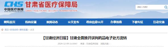 近日,甘肅省醫(yī)療保障局印發(fā)《關(guān)于全面推開談判藥品電子處方流轉(zhuǎn)的通知》,決定自2025年1月1日、4月1日起分2批推開談判藥品外配處方電子化工作。