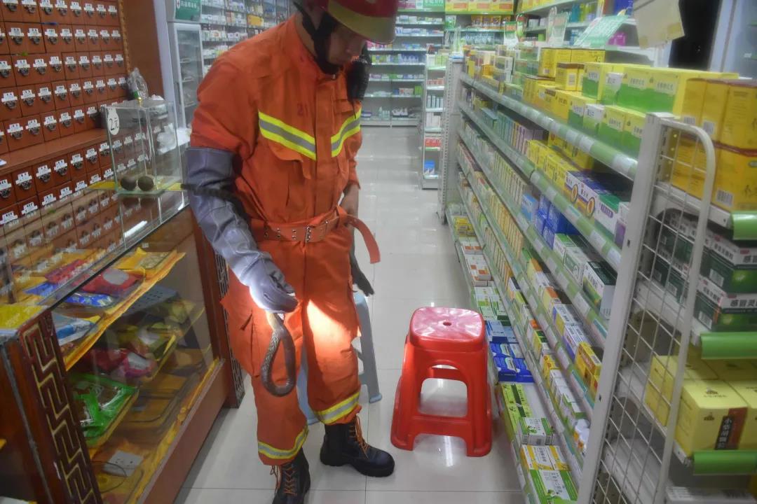 藥店進(jìn)蛇怎么辦?疏散群眾,消防進(jìn)場!